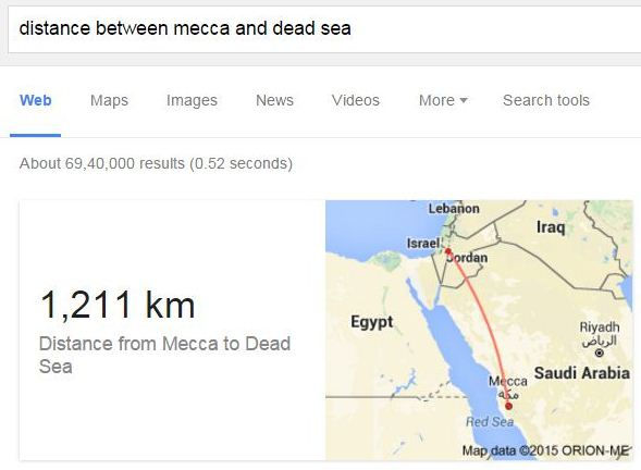 படம் 3: மக்காவிற்கும் சவக்கடலுக்கும் இடையே உள்ள தூரம் – 1211 கி.மீ.
